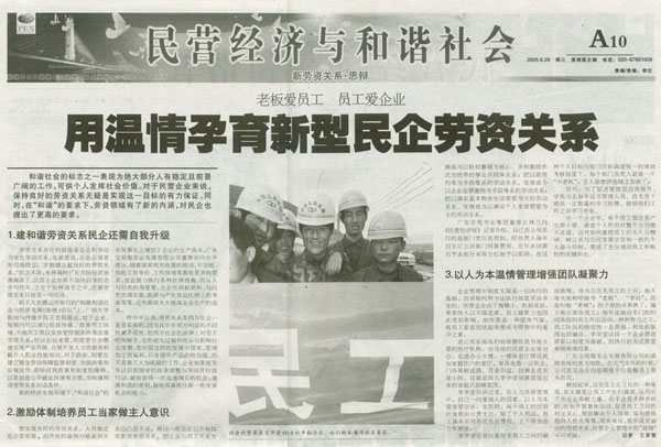 用溫情孕育新型民企勞資關(guān)系(摘自民營經(jīng)濟(jì)報(bào))